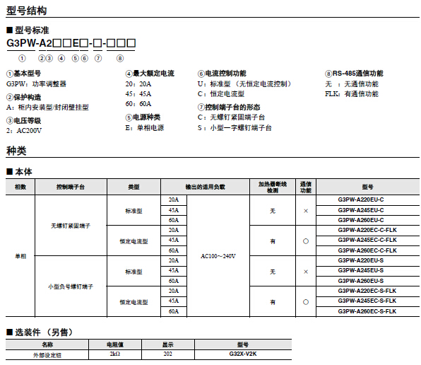 ·加热器断线检测功能(基于加热器电阻值的检测,实现更准确的断线检查.可检测多台加热器中的单台断线)·可通过数字显示监控设定值与输出量·可选择控制模式(相位控制、最佳周期控制)·可通过通信端口(RS-485)进行输出量的设定与负载电流的监控·可监控运行时间·可选择4个相位控制方式(与为相角成正比控制、与电压成正比控制、与电压的平方成正比控制、恒定电流控制)·适用于多种负载(变压器负载,合金加热器,纯金属加热器等)·获得UL以及CE认证