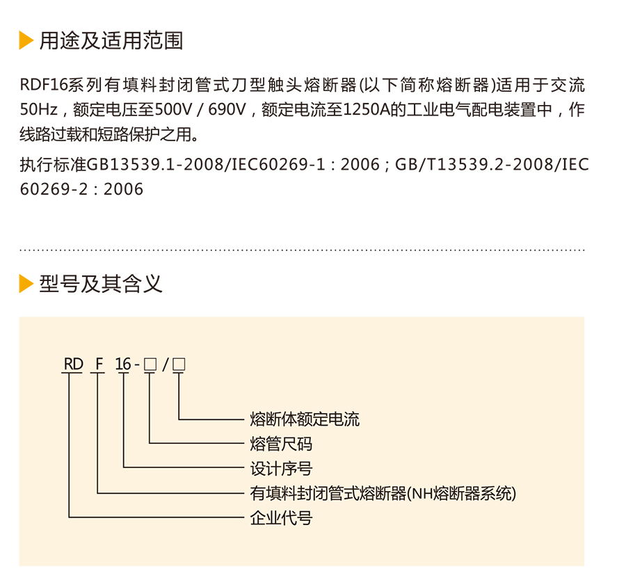 适用于交流50Hz,额定电压至500V/690V,额定电流至1250A的工业电气配电装置中,作线路过载和短路保护之用