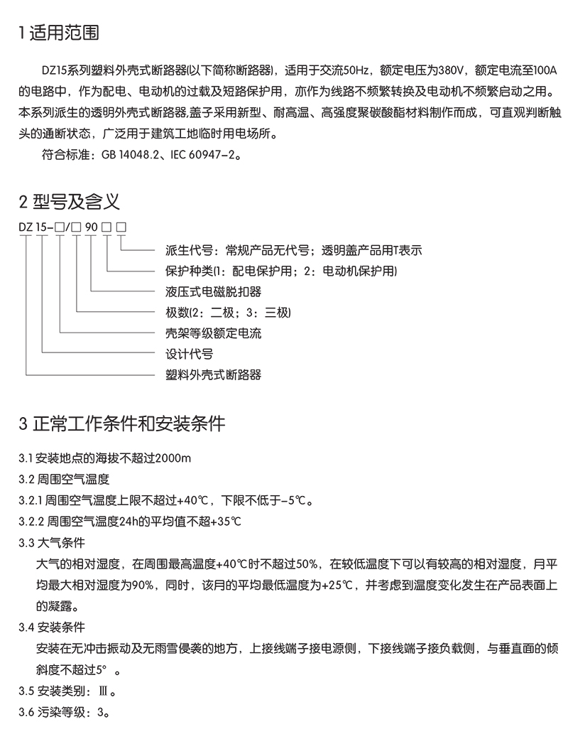 213978/DZ15-100/3901/100A/DZ15塑料外壳式断路器