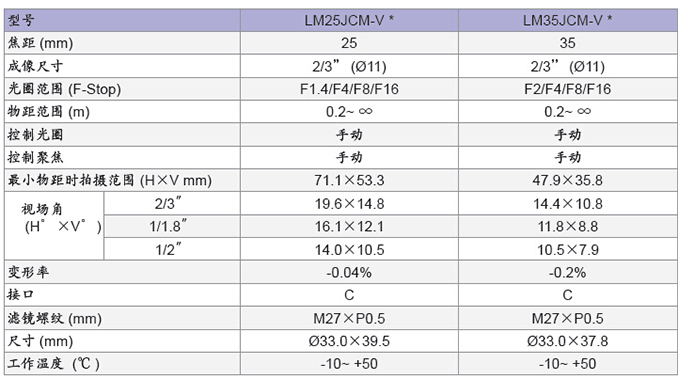 LM35JCM-V 高分辨率FA/MV镜头
