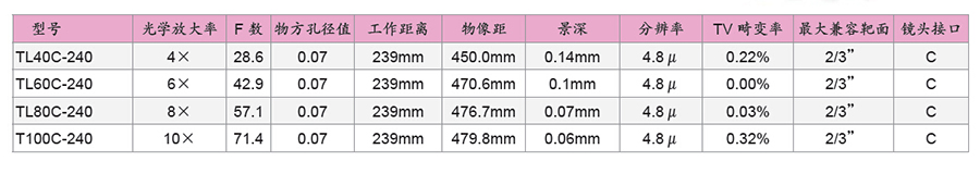 214741/TL40C-240/WD240高放大倍率远心镜头