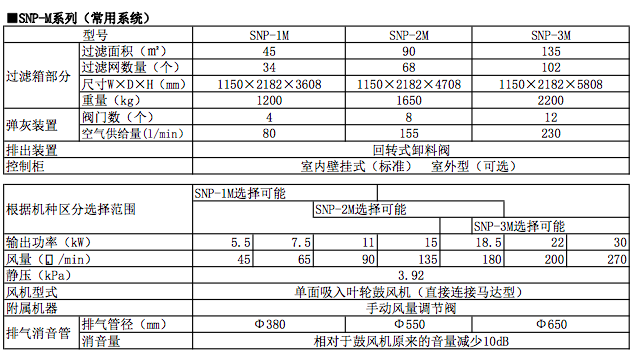 还有在过滤箱体中安装鼓风机、排气消音器、控制板的SNP-M系列可以供选择。