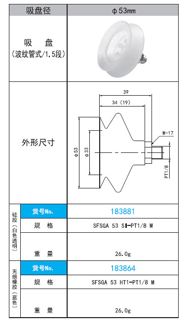 SFSGA 53 SI·HT1 -PT1/8 M直径53mm波纹管式/1.5段吸盘